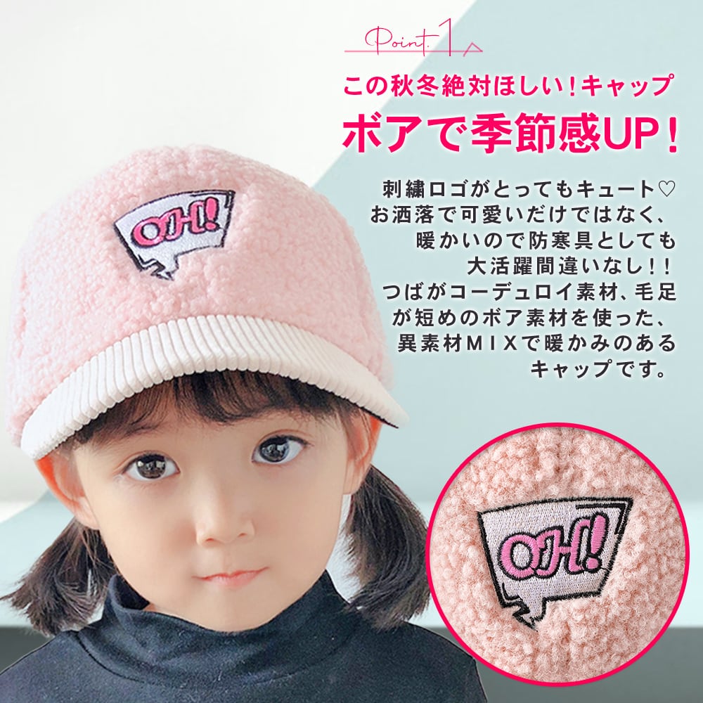 ロゴキャップ ボア コーデュロイ プレゼント 子供 帽子 女の子 可愛い ピンク ベージュ キッズ